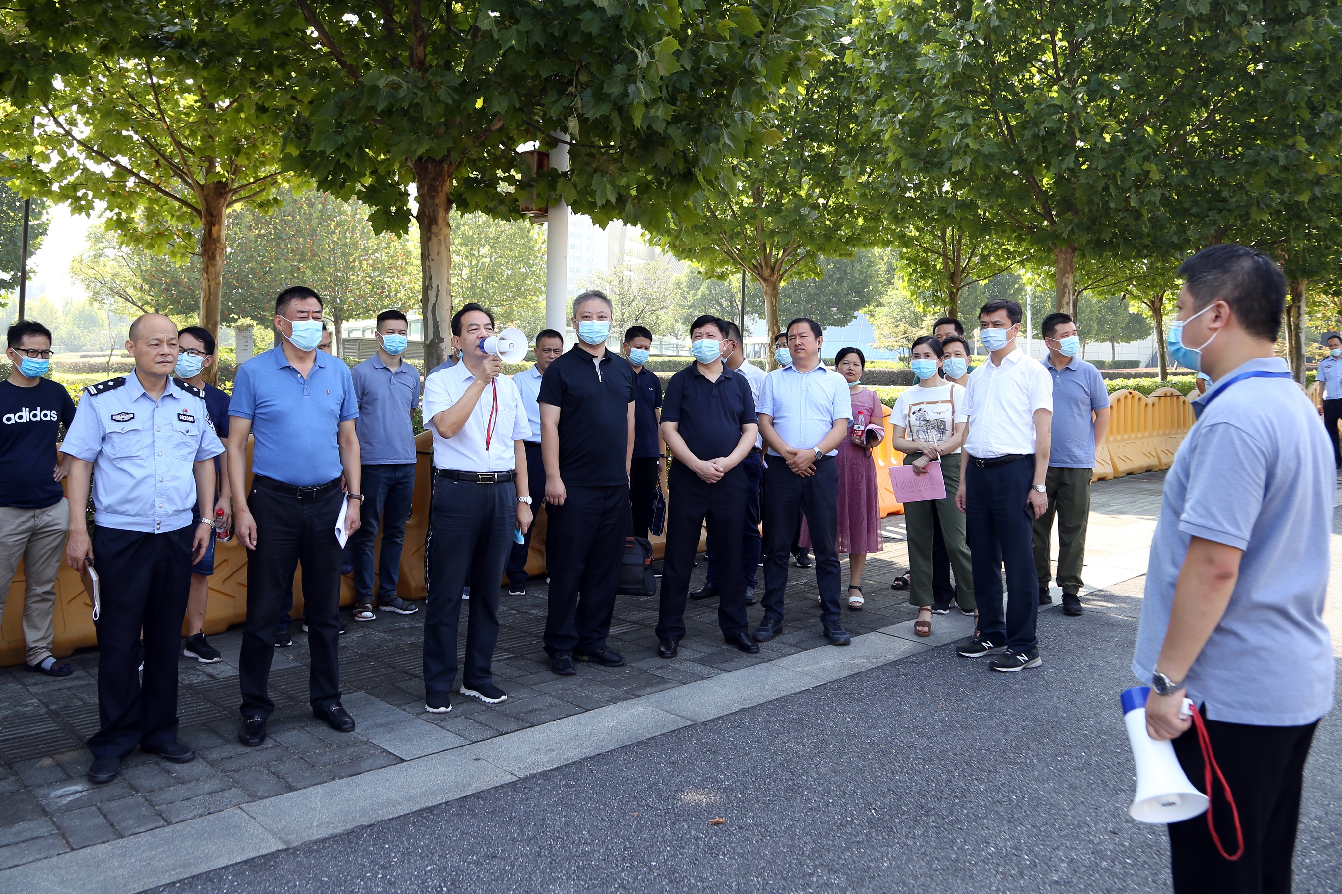 8月24日,省供销社、省公安厅、省卫健委,合肥市供销社、市卫健委、市公安局治安支队、市疾控中心,包河区政府、包河区疾控中心,中设会展公司、政文会展公司等相关部门及单位联合召开现场工作会议,并现场进行防疫工作演练。演练安排协调组、验码组、测温组、交通组、巡逻组、消毒组、制证组等7个小组通力配合,负责测温、验码、车辆引导、现场巡查、卫生消杀、制证查验等工作,各小组各司其职、密切配合,模拟异常状况的发生,并现场启动疫情防控应急预案。